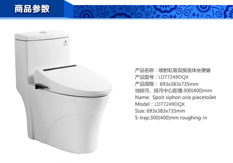 噴射虹吸雙按連體坐便器LD77249DQX