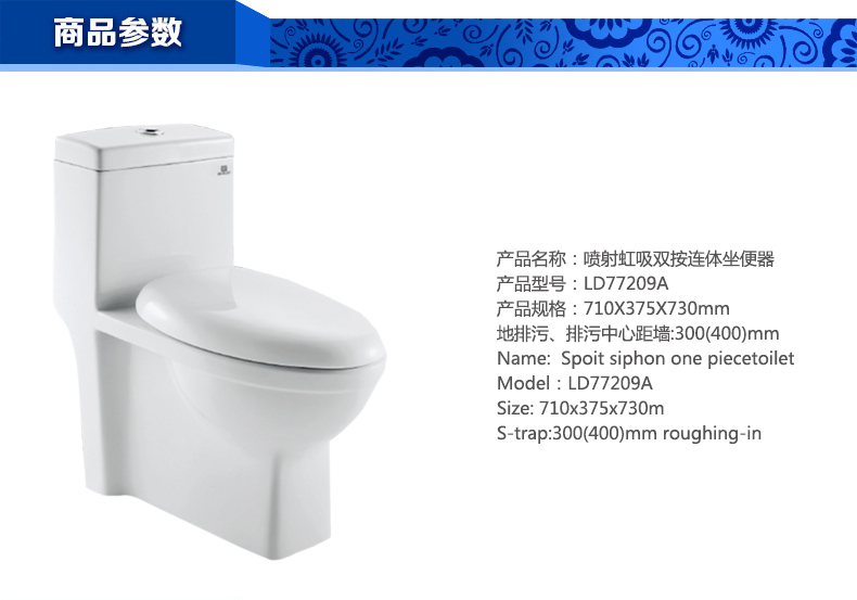 噴射虹吸雙按連體坐便器LD77208A