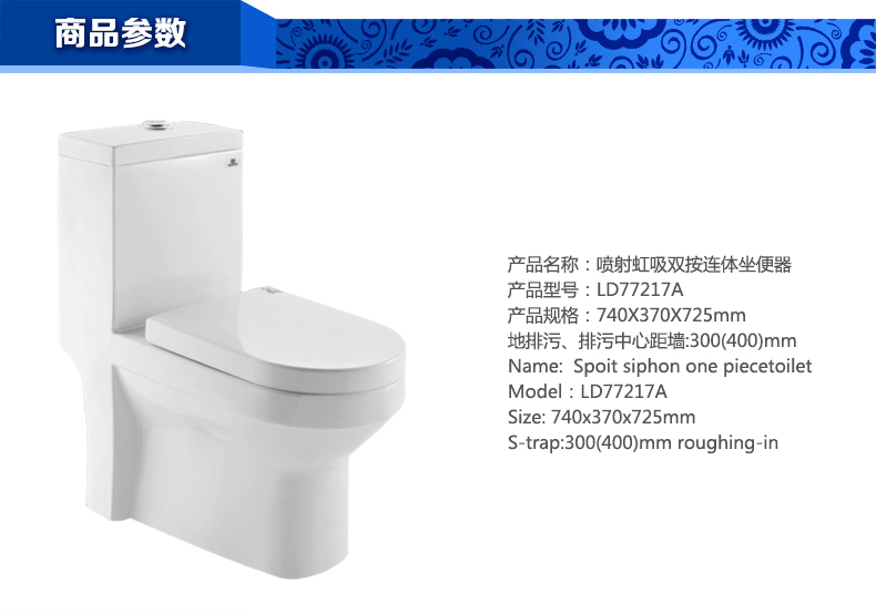 噴射虹吸雙按連體坐便器LD77217A