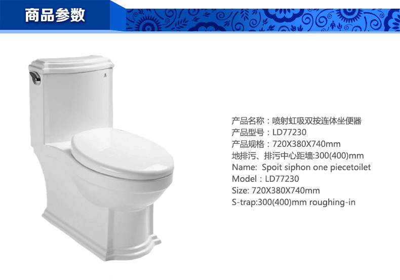 噴射虹吸雙按連體坐便器LD77230