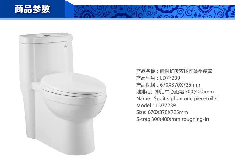 噴射虹吸雙按連體坐便器LD77239