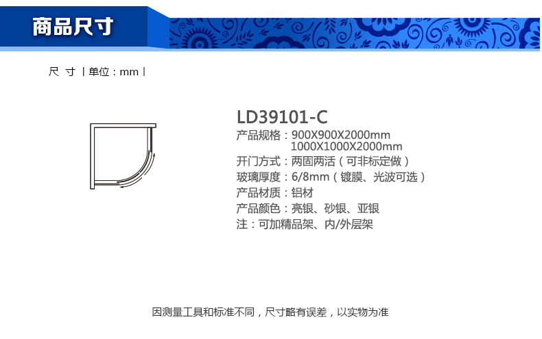 淋浴房LD39101-C900X900X2000mm 1000X1000X2000mm