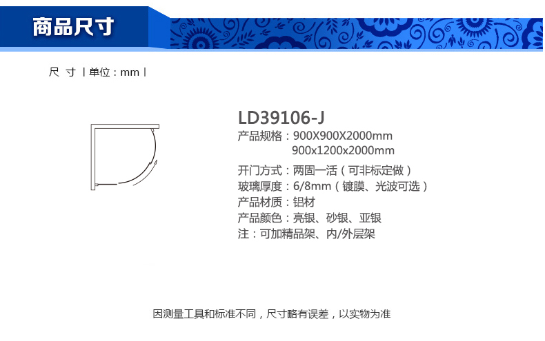 淋浴房LD39106-J900x900x2000mm 900x1200x2000mm