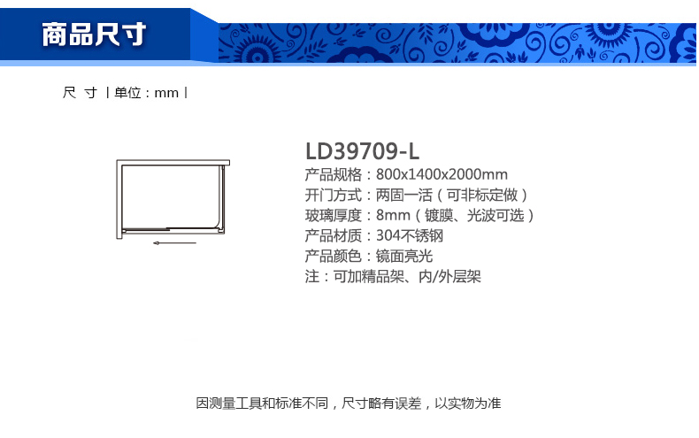 淋浴房LD39709-L800x1400x2000mm
