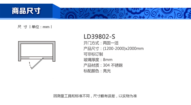 淋浴房LD39802-S(1200-2000)x2000mm