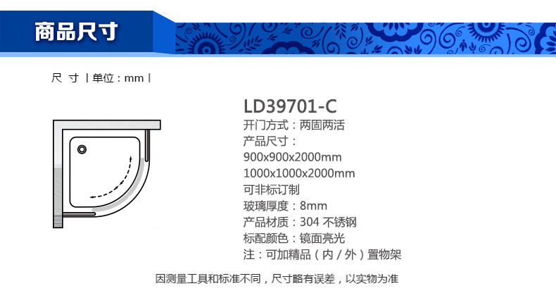 淋浴房LD39701-C900x900x2000mm 1000x1000x2000mm