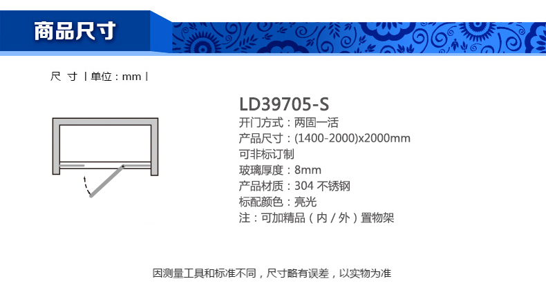 淋浴房LD39705-S(1400-2000)x2000mm