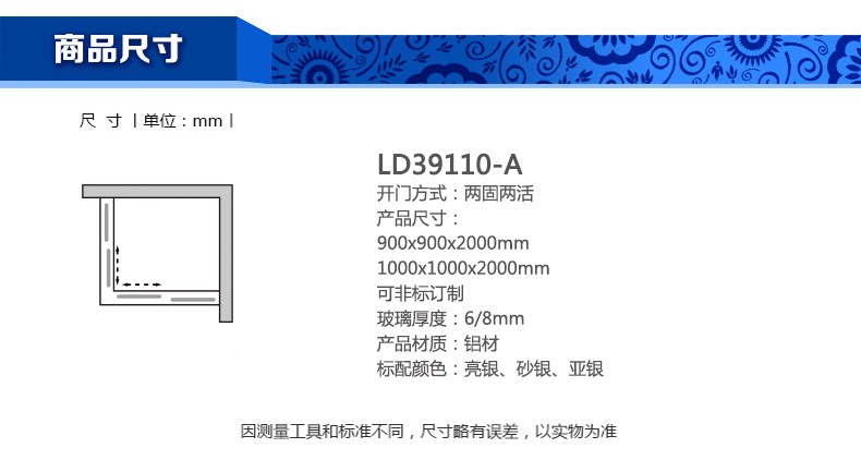 淋浴房LD39110-A900x900x2000mm 1000x1000x2000mm