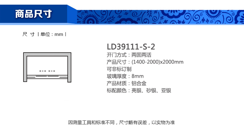 淋浴房LD39111-S-2(1400-2000)x2000mm